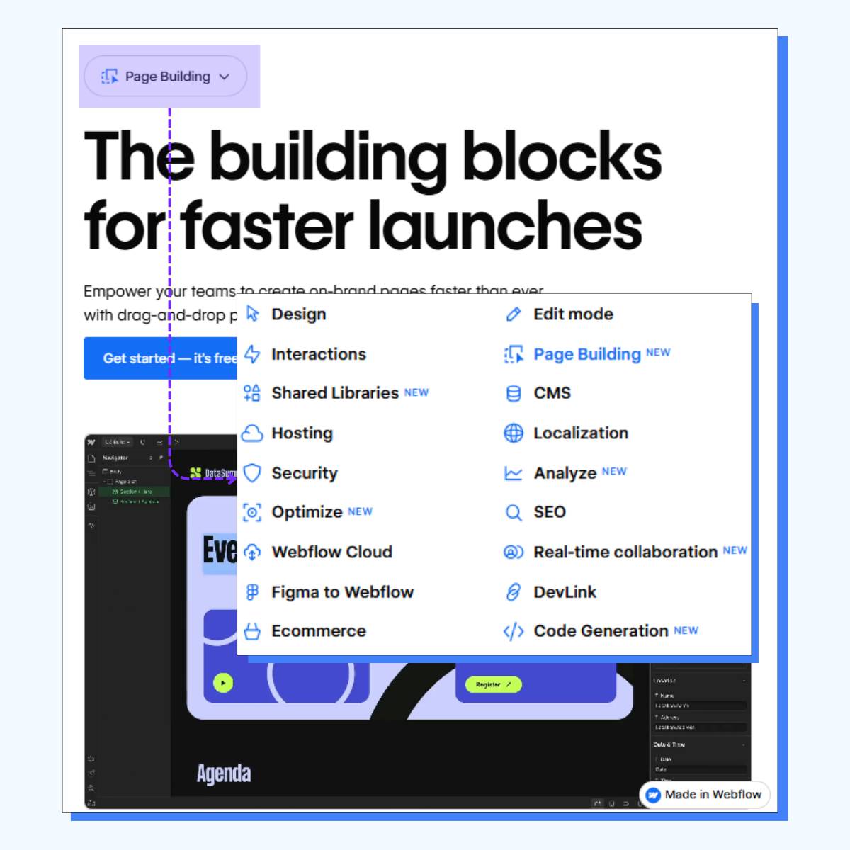 So Webflow added a smart dropdown menu on it's feature pages to make jumping between them easier.