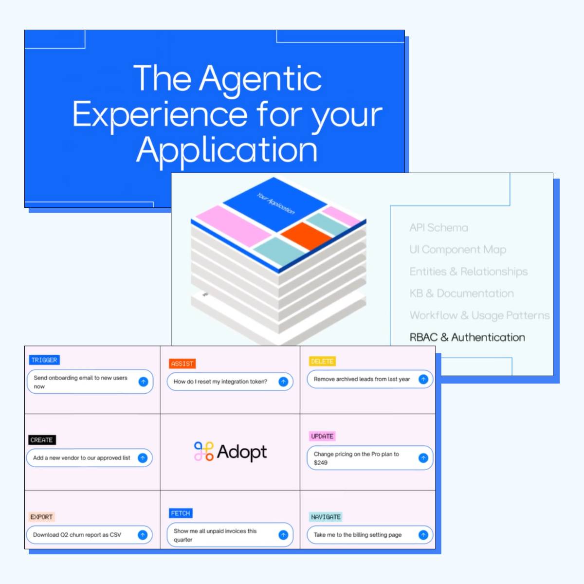 An "embedded agentic experience" isn't an easy concept to explain, but Adopt nails it with their homepage explainer video.