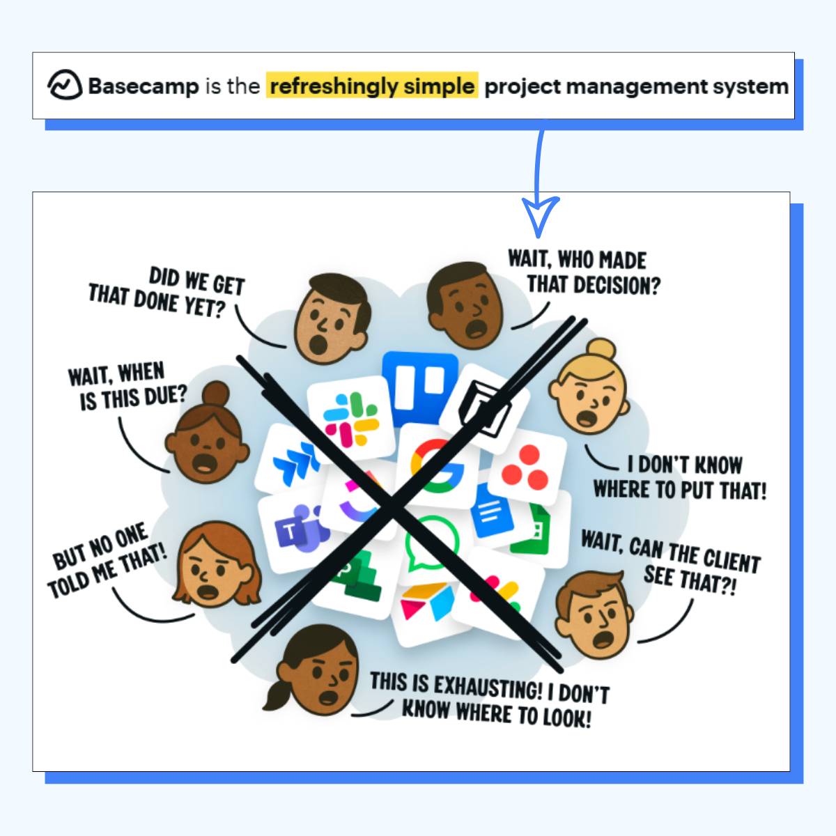 Will it work for them? Basecamp has the luxury of a widely known brand and a problem people instantly associate with their product: project management software.