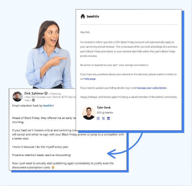 Beehiiv ran a smart campaign to get ahead of Black Friday churn.