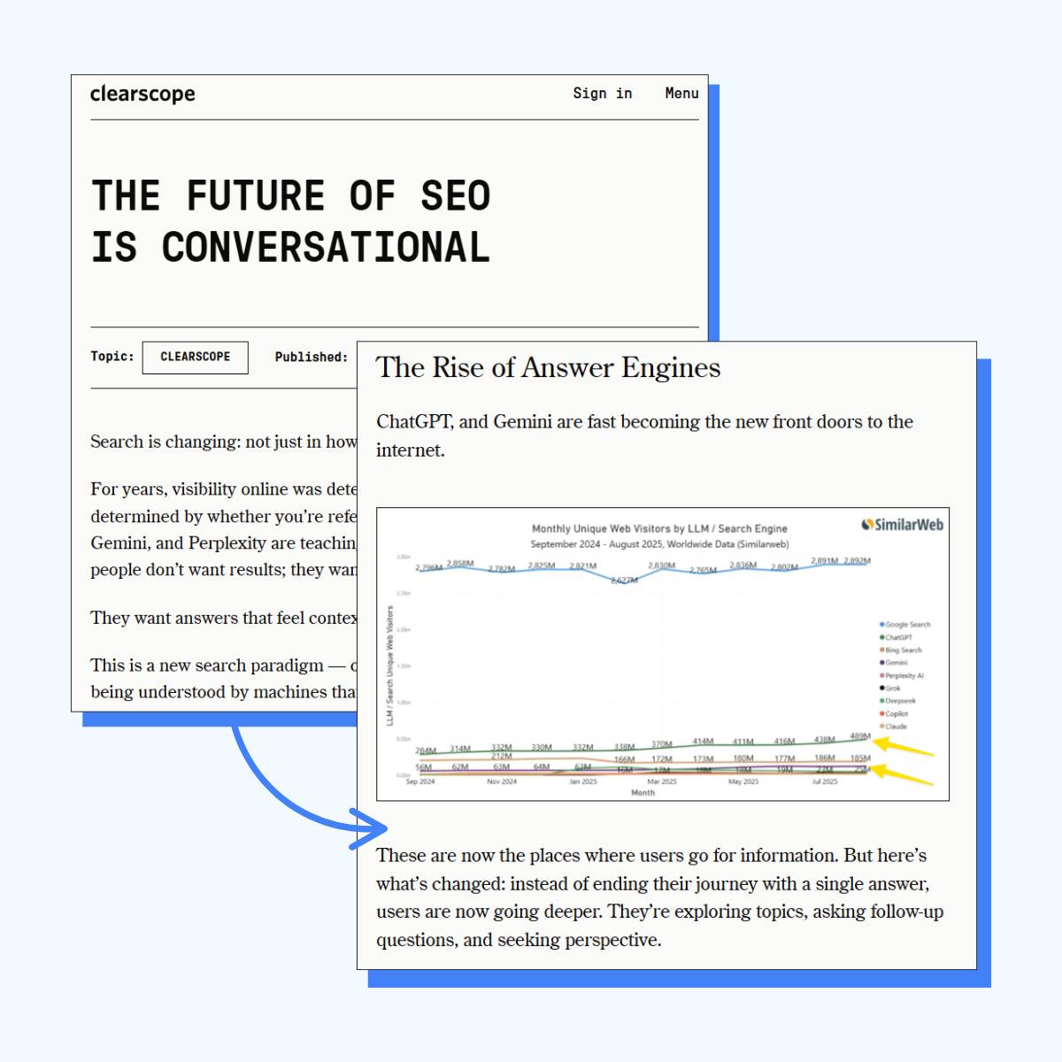 ClearScope’s “The Future of SEO Is Conversational” blog doesn't just push a clear POV on where search is going. It also shows exactly where ClearScope fits.