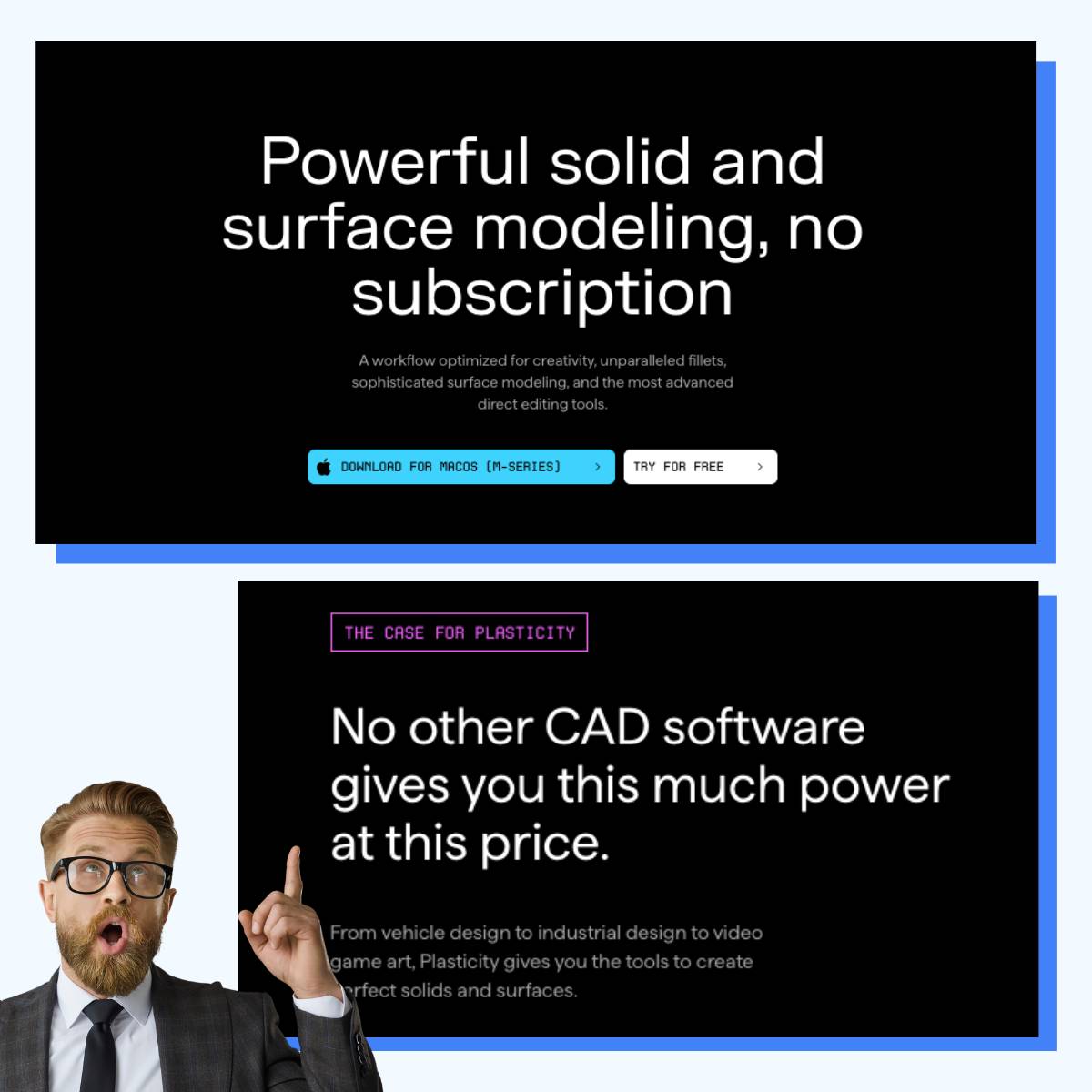 Plasticity puts its pricing model front and center on their homepage, using it as a clear differentiator.