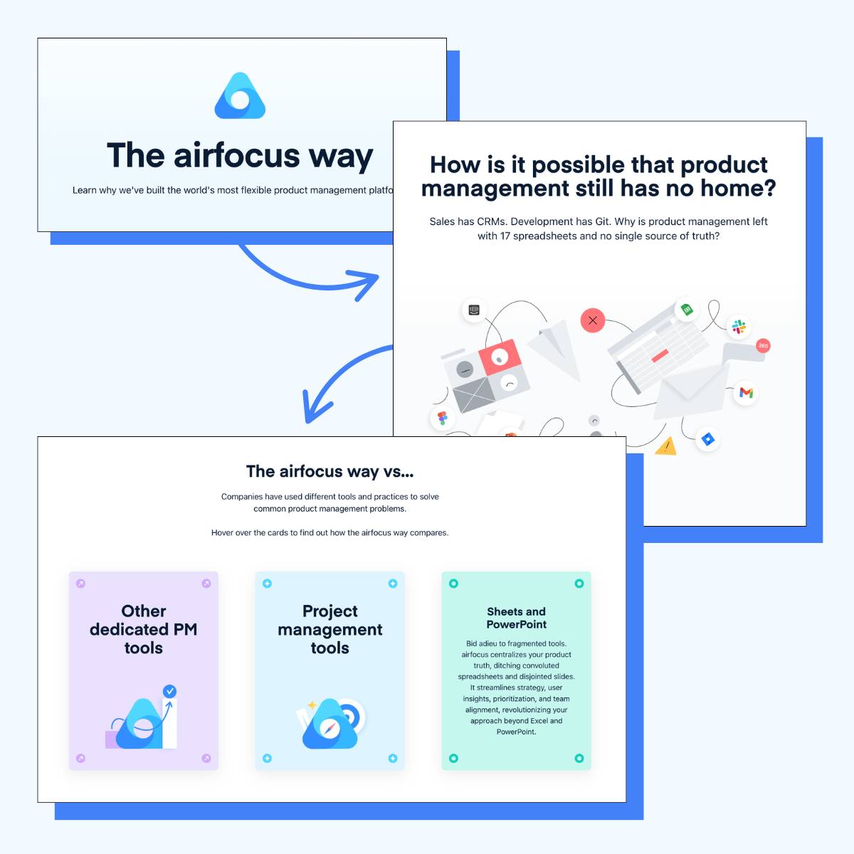 It walks you through the problem with product management software available to PMs today. They then introduce a great founder story, supported by the unique capabilities Airfocus brings to the table.